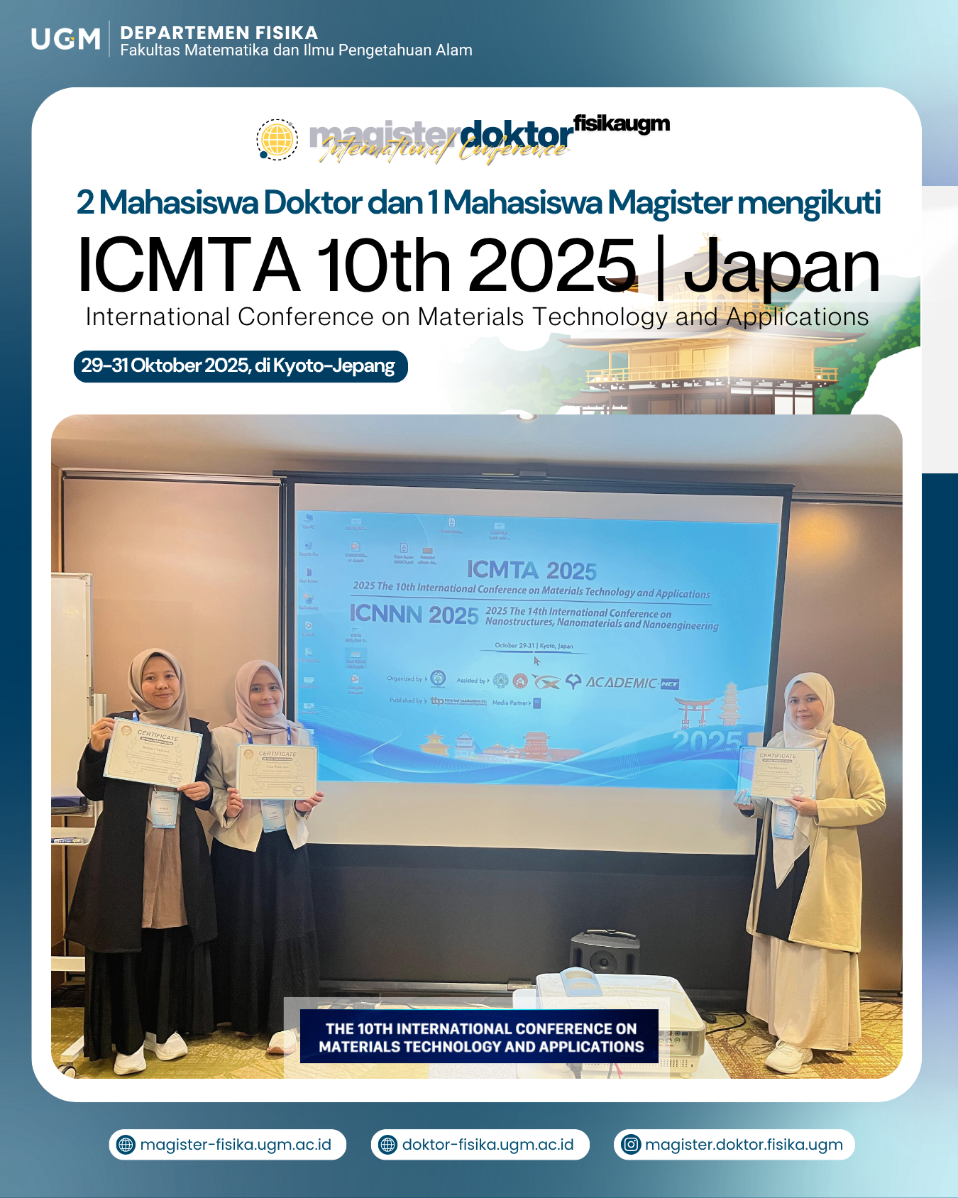 Departemen Fisika Fakultas Matematika dan Ilmu Pengetahuan Alam (FMIPA) Universitas Gadjah Mada kembali membuka Penerimaan Mahasiswa Baru Program Pascasarjana Fisika untuk Semester Genap Tahun Akademik 2025/2026.
