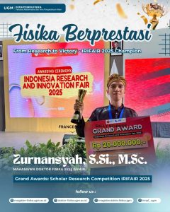 The Department of Physics, Faculty of Mathematics and Natural Sciences (FMIPA), Universitas Gadjah Mada, is pleased to announce the opening of admissions for new students to the Graduate Programs in Physics for the Even Semester of the 2025/2026 Academic Year.